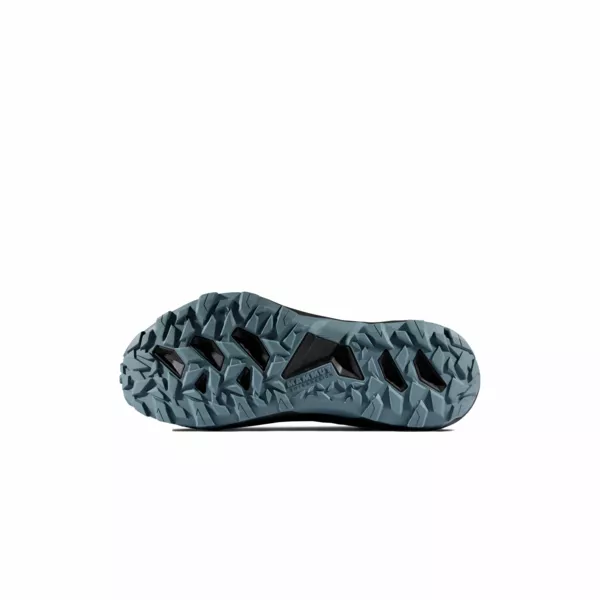 - podeszwa zewnętrzna Mammut Swiss Design wykonana z wytrzymałej gumy i z agresywnym bieżnikiem, która odpowiada za trakcję i responsywność podczas szybkiego poruszania się w terenie