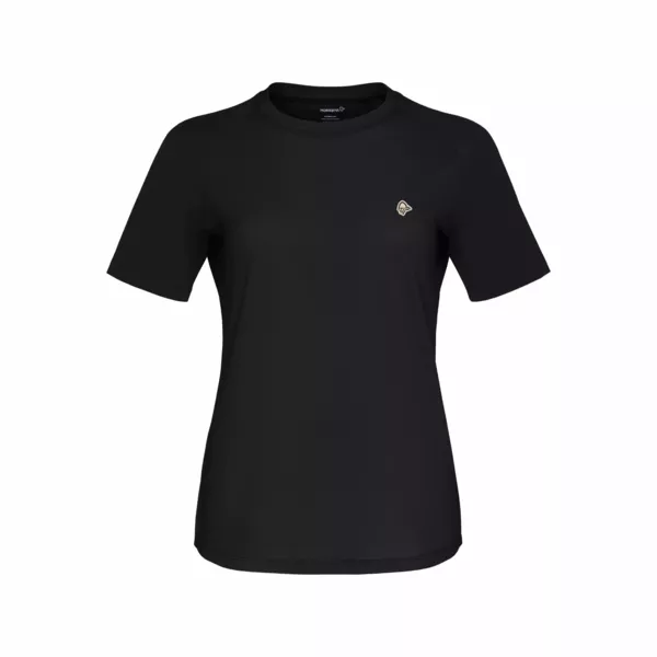 - logotyp zależny od wersji kolorystycznej produktu: nadrukowany mniejszy logotyp marki Norrona na piersi, duży logotyp na froncie lub mała wyszywana łatka z logo na piersi