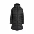 Miejski płaszcz puchowy zapewniający optymalny komfort termiczny. Zewnętrzny materiał Pertex Quantum gwarantuje odporność na wiatr, a dodatkowa impregnacja DWR podstawową ochronę przed przemakaniem. Wypełnienie stanowi wysokiej jakości puch naturalny kaczy. Dłuższy krój oraz przylegający kaptur doskonale sprawdzą się podczas zimy w mieście, ale także na niezbyt wymagających szlakach. Model ten został wyposażony w wewnętrzy ściągacz w talii, dzięki czemu można go dopasować do kobiecej sylwetki.