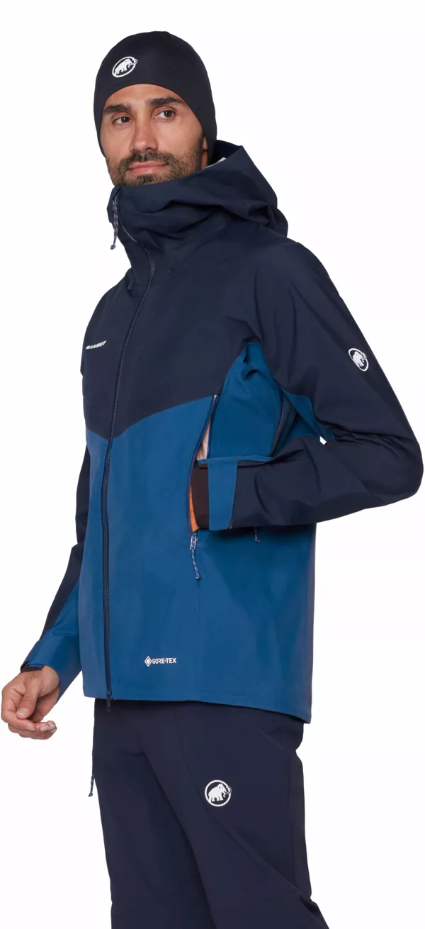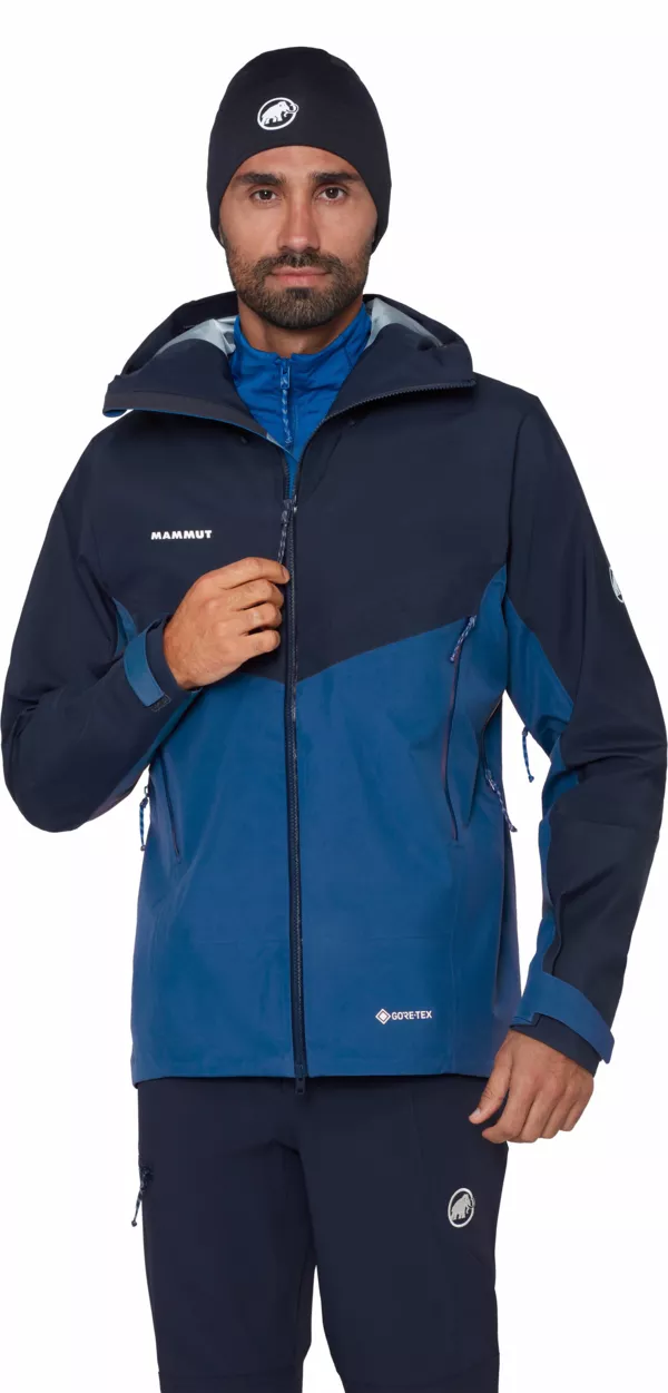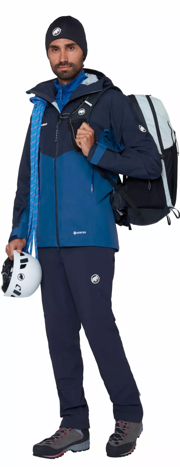 Crater IV HS Hooded Jacket Men to 3-warstwowa kurtka typu hardshell dla całorocznych poszukiwaczy przygód dbających o zrównoważony rozwój. Została zbudowana w oparciu o nową membranę niezawierającą szkodliwych związków PFC - GORE-TEX ePE, która oferuje zmniejszony ślad węglowy i bezkompromisową wydajność w trudnych warunkach. Jest nie tylko trwała i wodoodporna, ale także oddychająca, lekka i wysoce kompresyjna. A ponieważ marka Mammut dba o szczegóły tak samo, jak o środowisko środowisko, wyposażyła ją również w wewnętrzną i zewnętrzne kieszenie, wentylację pod pachami i regulowany, kompatybilny z kaskiem kapturz wzmocnionym daszkiem. Posiada wszystko co potrzeba by ruszyć na szlak.