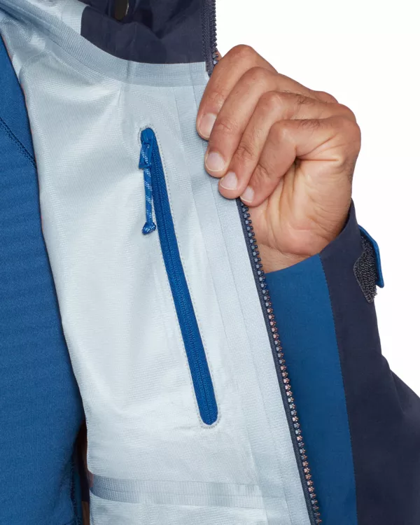 - wytrzymały, odporny, wiatro- i wodoszczelny 3-warstwowy materiał z klasyczną membraną GORE-TEX ePE membrane nie zawierający szkodliwych związków PFC, o parametrach wodoszczelności 28 000 mm i oddychalność RET <13 m2Pa/W