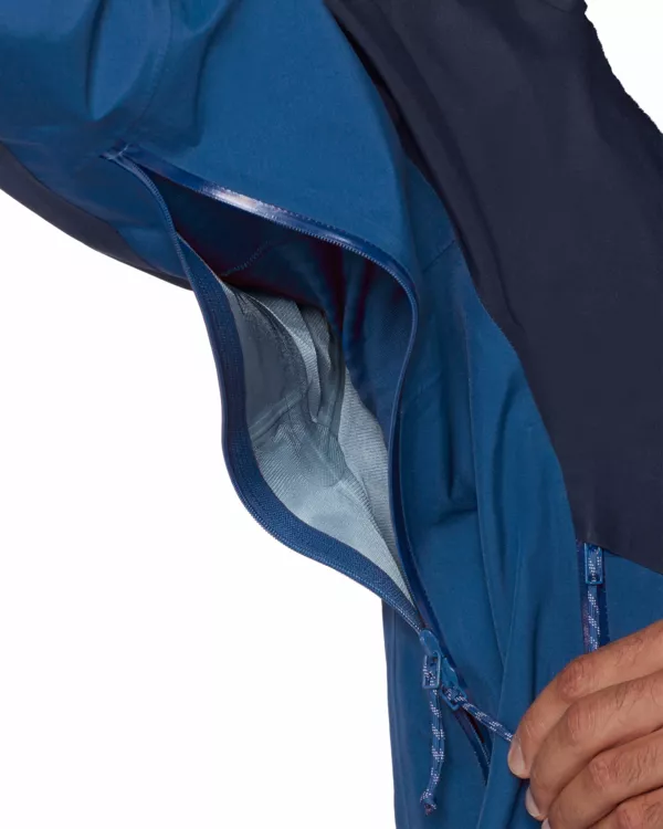 - wentylacja pod pachami regulowana za pomoca 2-wózkowych, wodoodpornych zamków YKK zapewniających optymalny przepływ powietrza