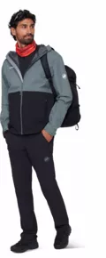 - wiatroszczelny i wodoszczelny 2,5-warstwowy materiał wyposażony w membranę Mammut DRY Tour o parametrach wodoszczelności: 10 000 mm i oddychalności: 10 000 g/m2/24h