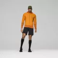 Senja Alpha90 Hood to techniczna, hybrydowa bluza polarowa marki Norrona. Została zaprojektowana z myślą o bieganiu w terenie w zmiennych warunkach, gdzie kluczowe znaczenie ma równowaga między izolacją termiczną a oddychalnością. Model ten łączy skuteczną ochronę przed wiatrem w przedniej części z bardzo dobrą wentylacją na plecach, co pozwala utrzymać komfort zarówno podczas intensywnego wysiłku, jak i w chłodniejszych momentach aktywności. Bluza wykorzystuje zaawansowane materiały techniczne. Polar Polartec Power Grid zapewnia elastyczność, trwałość oraz doskonały stosunek ciepła do wagi, jednocześnie wspierając efektywne odprowadzanie wilgoci. Dodatkowo zastosowana izolacja Polartec Alpha 90 gwarantuje stały komfort cieplny przy jednoczesnym odprowadzaniu nadmiaru ciepła, co czyni ją idealnym rozwiązaniem do dynamicznych aktywności. Przednia część oraz ramiona zostały zabezpieczone lekkim, wiatroodpornym materiałem nylonowym ripstop, który chroni przed wychłodzeniem bez utraty oddychalności. Model posiada techniczny krój z lekko wydłużonym tyłem, który zwiększa ochronę dolnej części pleców. Przemyślane detale, takie jak dopasowany kaptur, profilowane rękawy czy pionowa kieszeń typu napoleon, sprawiają, że bluza doskonale sprawdzi się jako warstwa pośrednia lub lekka warstwa zewnętrzna podczas aktywności outdoorowych.