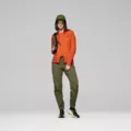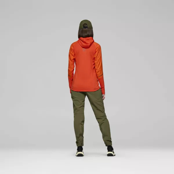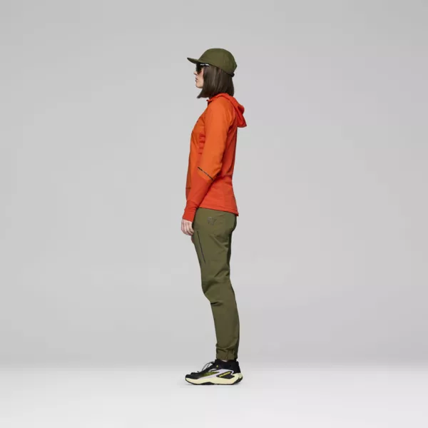 Senja Alpha90 Hood to techniczna, hybrydowa bluza polarowa marki Norrona. Została zaprojektowana z myślą o bieganiu w terenie w zmiennych warunkach, gdzie kluczowe znaczenie ma równowaga między izolacją termiczną a oddychalnością. Model ten łączy skuteczną ochronę przed wiatrem w przedniej części z bardzo dobrą wentylacją na plecach, co pozwala utrzymać komfort zarówno podczas intensywnego wysiłku, jak i w chłodniejszych momentach aktywności. Bluza wykorzystuje zaawansowane materiały techniczne. Polar Polartec Power Grid zapewnia elastyczność, trwałość oraz doskonały stosunek ciepła do wagi, jednocześnie wspierając efektywne odprowadzanie wilgoci. Dodatkowo zastosowana izolacja Polartec Alpha 90 gwarantuje stały komfort cieplny przy jednoczesnym odprowadzaniu nadmiaru ciepła, co czyni ją idealnym rozwiązaniem do dynamicznych aktywności. Przednia część oraz ramiona zostały zabezpieczone lekkim, wiatroodpornym materiałem nylonowym ripstop, który chroni przed wychłodzeniem bez utraty oddychalności. Model posiada techniczny krój z lekko wydłużonym tyłem, który zwiększa ochronę dolnej części pleców. Przemyślane detale, takie jak dopasowany kaptur, profilowane rękawy czy pionowa kieszeń typu napoleon, sprawiają, że bluza doskonale sprawdzi się jako warstwa pośrednia lub lekka warstwa zewnętrzna podczas aktywności outdoorowych.