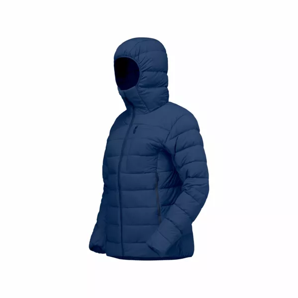 Norrona Femund Down700 Zip Hood to ciepła, średniej grubości kurtka puchowa, zaprojektowana z myślą o wędrówkach i szerokim zastosowaniu outdoorowym. Jej lekka, pikowana konstrukcja sprawia, że świetnie sprawdza się zarówno w górach, jak i podczas codziennego użytku w mieście czy w podróży. Wypełnienie stanowi puch z recyklingu o sprężystości 700 CUIN, zapewniający bardzo dobrą izolację i komfort cieplny. Zewnętrzny materiał to lekki, matowy nylon z recyklingu (22D), który jest miękki w dotyku, a jednocześnie wytrzymały. W miejscach narażonych na zawilgocenie, takich jak pachy, zastosowano syntetyczną izolację dla lepszej trwałości i ochrony przed wilgocią. Model posiada regulowany kaptur dopasowany do czapki, przedłużony tył dla lepszej ochrony termicznej oraz elastyczne mankiety i dół. Funkcjonalność podnoszą kieszenie do ogrzewania dłoni, kieszeń na piersi oraz wewnętrzna kieszeń na drobiazgi.