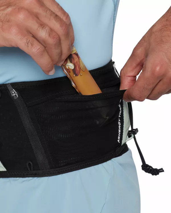 Aenergy Trail Beltto kolejna nowość w kolekcji Aenergy Trail marki Mammut. Pras do biegania w terenie, pozwalający na przenoszenie niezbędnych rzeczy z wyjątkowym komfortem. Zaprojektowany z myślą o swobodzie ruchów - dzięki elastycznej siateczce i dopasowanemu krojowi pas pozostaje stabilny, co pozwala na bieganie bez rozpraszania uwagi. Tylny panel z materiału siateczki w technologii 3D poprawia przepływ powietrza, zapewniając chłód i szybsze wysychanie potu. Liczne kieszenie - w tym główna kieszeń zapinana na zamek i kieszeń na klucze - zapewniają szybki dostęp do przekąsek lub wody w trakcie biegu. Wyposażony w dwa dodatkowe elastyczne paski do przenoszenia kijków, pas Aenergy Belt Trail Running jest idealnym wyborem na krótkie biegi, długie dni treningowe i wszystko pomiędzy.