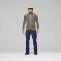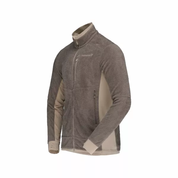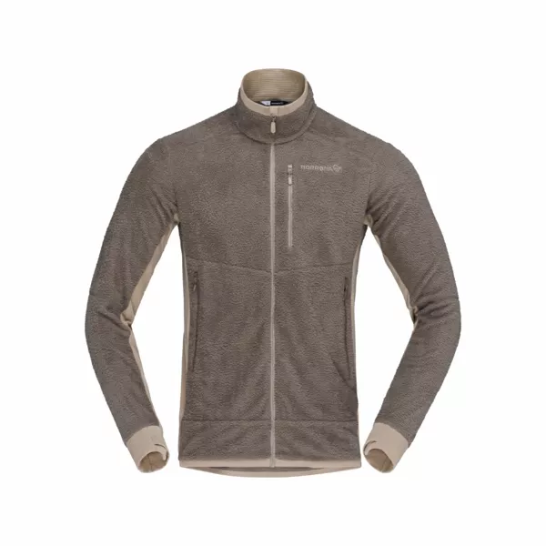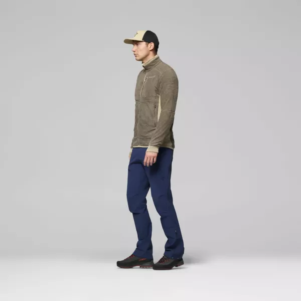 Najbardziej oddychająca i szybkoschnąca warstwa środkowa w kolekcji Norrona została zaprojektowana z myślą o intensywnych aktywnościach górskich. Doskonale sprawdzi się podczas wspinaczki, skituringu, biegów terenowych oraz wszędzie tam, gdzie kluczowe znaczenie mają efektywna termoregulacja, niska waga i swoboda ruchów. To techniczny midlayer, który można nosić zarówno jako samodzielną warstwę w cieplejsze dni, jak i element systemu warstwowego w chłodniejszych warunkach. Model wykorzystuje lekkie materiały z serii warm1, zapewniające bardzo dobry stosunek ciepła do wagi, wysoką trwałość oraz szybkie schnięcie. Główną tkaniną jest puszysty polar wykonany w 100% z poliestru z recyklingu (110 g/m), oferujący skuteczną izolację przy minimalnej masie. Uzupełnieniem konstrukcji jest elastyczna dzianina typu grid fleece (92% poliester z recyklingu, 8% elastan, 130 g/m), która zwiększa oddychalność i wspiera odprowadzanie wilgoci. Ponad 50% włókien syntetycznych w produkcie pochodzi z recyklingu. Bluza posiada certyfikaty bluesign, GRS oraz Oeko-Tex i została wykończona technologią antyzapachową HeiQ Fresh FFL. Kurtka wyposażona jest w wygodny kołnierz bez ocierającej górnej krawędzi oraz zamek na całej długości z osłoną podbródka. Funkcjonalność podnoszą kieszeń piersiowa zapinana na zamek oraz pływające kieszenie umieszczone centralnie. Elastyczne panele boczne zmniejszają objętość i zwiększają mobilność, a kliny pod pachami oraz profilowane rękawy wspierają naturalny zakres ruchów. Model posiada elastyczne mankiety z otworami na kciuki (zintegrowane getry na dłonie), elastyczne wykończenie dołu oraz wydłużony tył dla lepszej ochrony dolnej partii pleców. Regularny krój zapewnia wygodne dopasowanie bez ograniczania swobody.