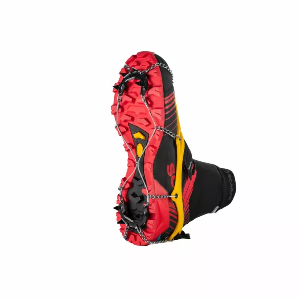 Explorer Light to odchudzony model raczków turystycznych od marki Grivel zaprojektowany z myślą o szybkim poruszaniu się w terenie i bieganiu gdzie liczy się każdy gram. Solidne 14 mini zębów ze stali nierdzewnej połączone z gumową konstrukcją tworzą kompaktowe rozwiązanie przeznaczone do użytku w śliskim terenie, na śniegu, lodzie i błocie. Dzięki wstępnie ukształtowanej budowie gumowego elementu dopasowują się do wielu rodzajów obuwia i gwarantują stabilność podczas poruszania się. Zęby ze stali nierdzewnej zostały pokryte dodatkową warstwą antykorozyjną, by wydłużyć żywotność w zimowych warunkach. Pętla na tyle ułatwia zakładanie i zdejmowanie. Para raczków została uzupełniona o pokrowiec z zamknięciem na zamek błyskawiczny, tworząc kompleksowe rozwiązanie. Dostępne w 4 rozmiarach w zależności od wielkości obuwia.