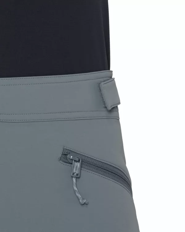 - spodenki wykonane z podwójnie tkanej tkaniny softshellowej z 92% poliamidu z recyklingu, zapewniającej wysoką odporność na ścieranie